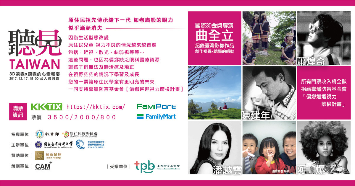 2017「聽見臺灣3D公益演唱會」由國際3D金獎導演:曲全立+金曲歌手:蕭煌奇、潘越雲、阿爆、陳建年進行視覺與聽覺的交融演出。